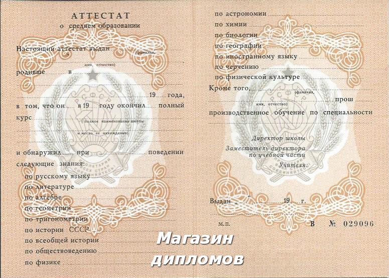 КУПИТЬ АТТЕСТАТ О СРЕДНЕМ ОБРАЗОВАНИИ СССР, 1990 ПО 1993 ГОД