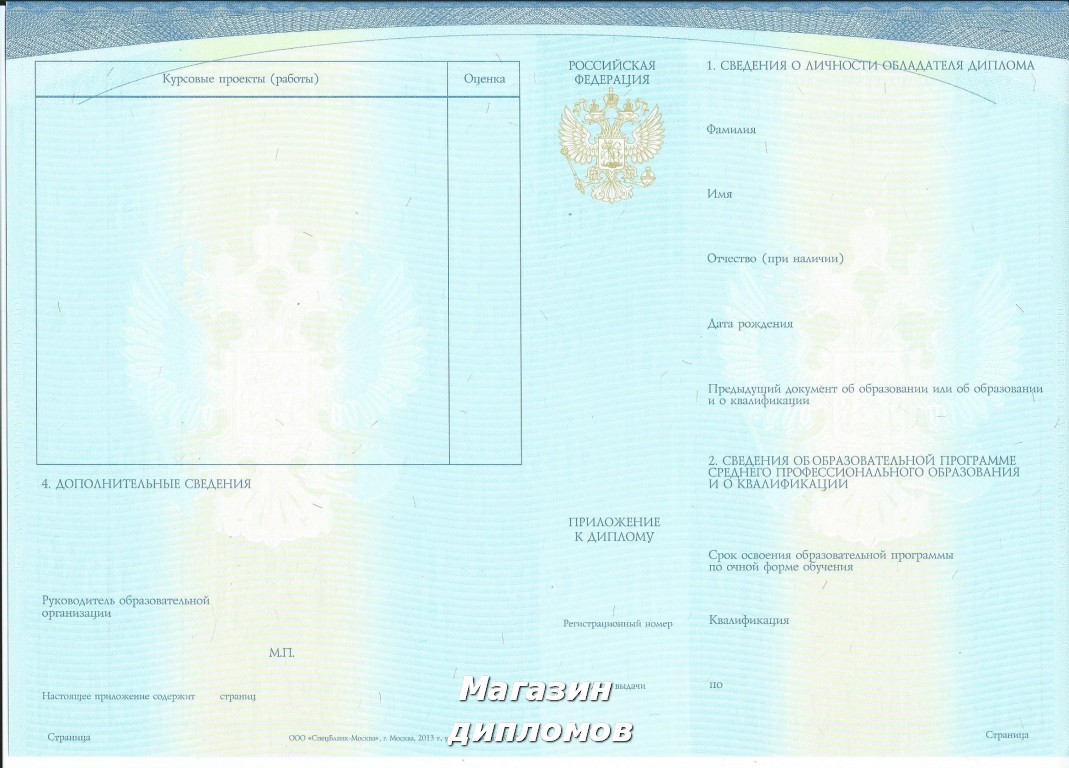 Диплом техникума (колледжа) Российской Федерации (Гознак, ППФ, Пермь 2011 год.), выдавался с 2011 года по 2013 год.